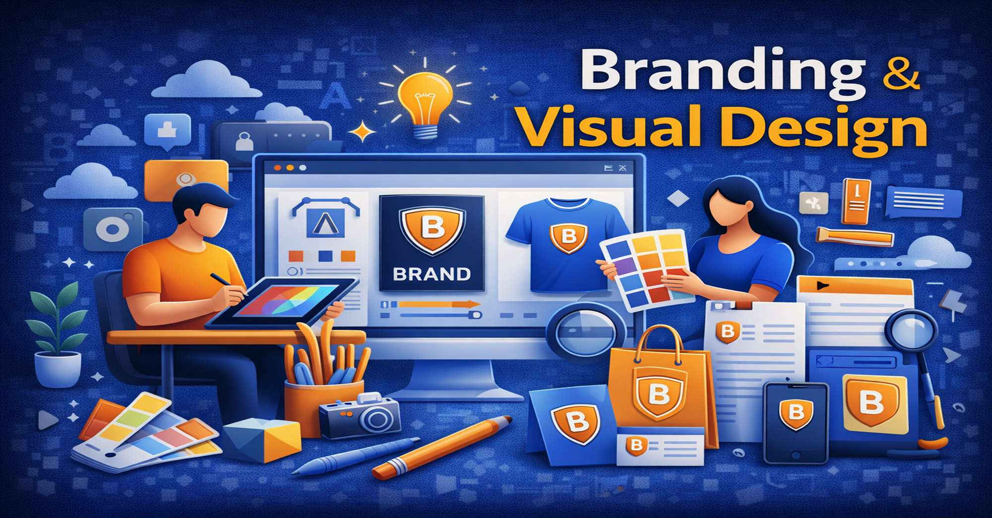 Our branding and visual design services focus on creating a consistent and recognizable identity for your business. Branding is not just about logos; it includes colors, typography, design style, and the overall visual language that represents your business across all platforms.